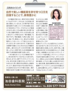 news 2025.12.05 メディア掲載 福島リビングの2024.4.5号に掲載されました。 これからも地域の方々の健康と美を守っていければと思います。 宜しくお願い致します。 池田歯科医院 facebook Line twitter google
